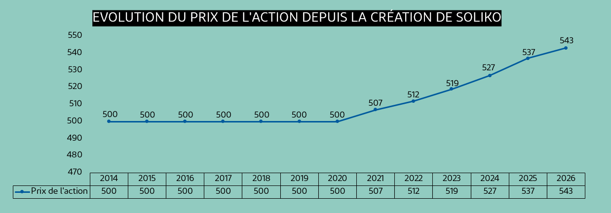 Cependant, le prix de l'action étant réévalué annuellement, vous pouvez réaliser une plus-value lors de la cession de vos actions. Par exemple, vous avez acheté des actions en 2014 au prix de 500€ et que vous souhaitez les revendre aujourd'hui, Soliko les rachètera au nouveau prix de l'action, soit 543€ au 03 février 2026. Vous allez donc enregistrer une plus-value de 43€ par action.